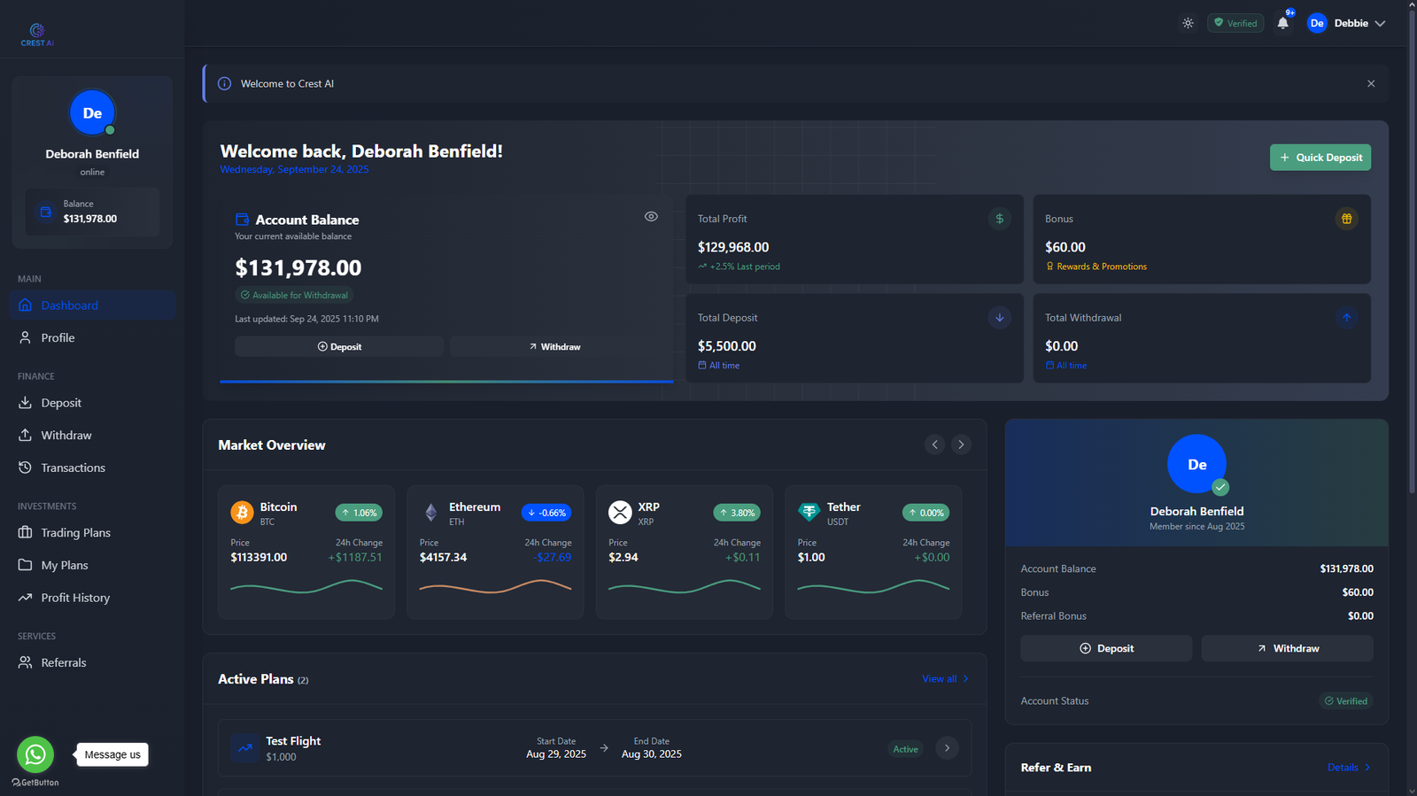 Crest AI is designed to empower users with a seamless trading experience. Our platform combines cutting-edge security with intuitive tools, so you can trade, convert, and grow your assets effortlessly.